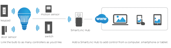 The INSTEON LED Bulb is the latest addition to the INSTEON product family, built upon the best-selling SmartLinc Hub. The INSTEON product family ranges from wall switches, plug-in modules and keypads to thermostats and motion sensors.