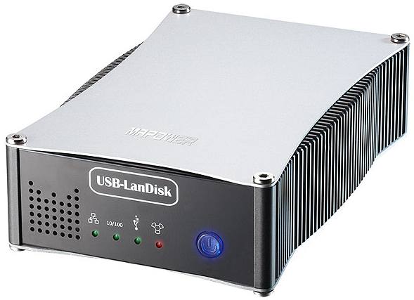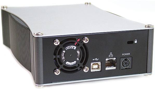 The next step is to configure the system. Connect the power adaptor (an in-line transformer similar to a laptop power supply) and then connect to your PC via the USB 2.0 port (cable included) or 10/100 Ethernet (cable not included) and hit the power button with its fashionable blue LED. I used my laptop for this stage as the unit has its DHCP server enabled my default, making it easy to configure when directly connected to a PC not on a LAN (you don’t need a cross over cable for this).