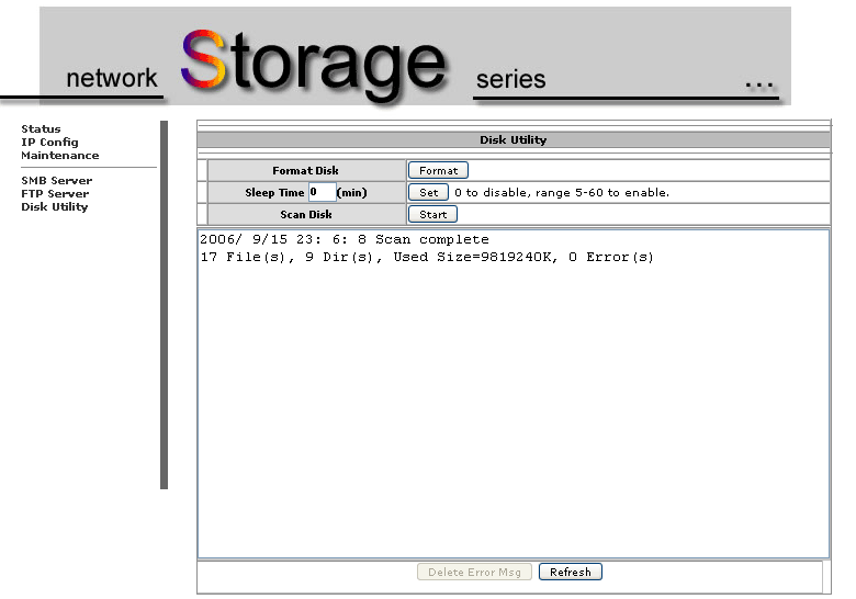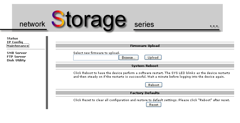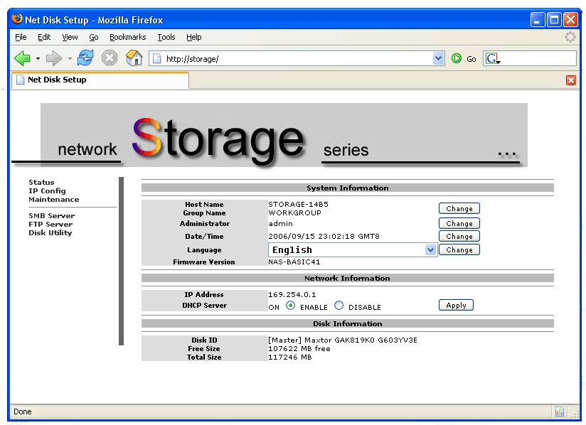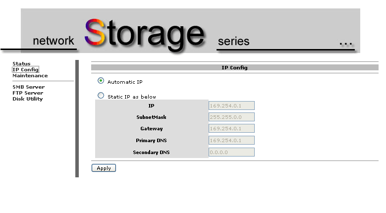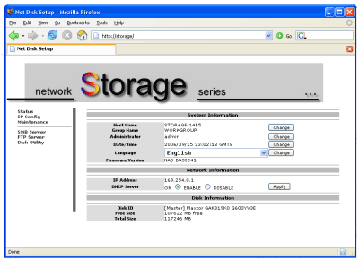 I disabled the DHCP server (my router takes care of that) and changed the unit to a fixed IP. Formatting the drive is carried out through the web interface. The NAS uses the FAT32 file system and it only takes a few seconds to format.