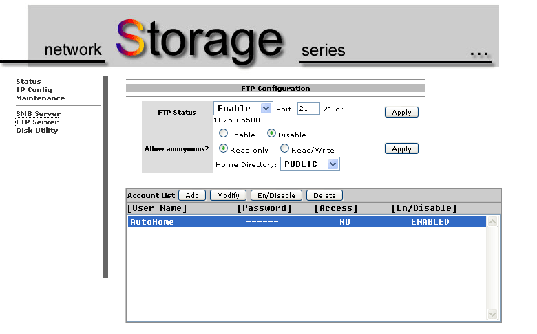 FTP – By plugging the unit into your Broadband router or a switch attached to it, you can also easily make all your files available from anywhere in the world via its built-in FTP server. FTP accounts are simple to setup with the administrator able to choose username and passwords for each as well as allowing or disallowing anonymous FTP clients to connect. You can also configure the port the server uses which some may feel reduces the attacks on FTP servers on the standard port 21. You’ll need to forward whichever port you choose in your NAT router so that it points to the IP of your NAS.