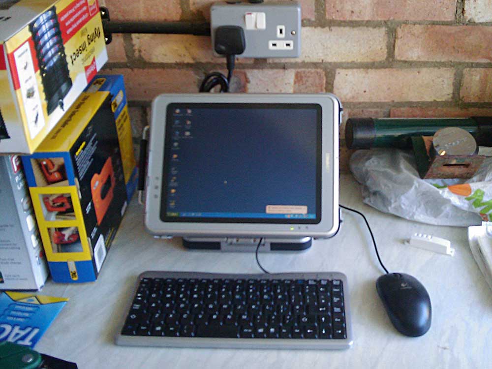 The image below shows a small TouchScreen Tablet PC that is setup at the other end of the workbench. This has proven extremely valuable over the years as although it’s fairly old and slow, it allows media to be watched in the garage while working on more of those un-finished HA projects! Plus it’s useful for research, web browsing, etc and also for configuring various equipment on the network that would otherwise require a trip into the house