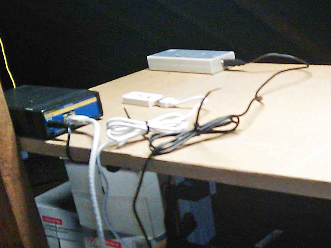 This image shows the rest of the equipment in the loft, there’s a further RFXCom Lan enclosure with 434MHz Transmitter and Receiver and an 868MHz Receiver as well as two Linksys NSLU2s. These have been re-purposed as embedded Linux machines and one is connected to a “HouseHeat” controller that integrates my Central Heating system onto the xAP network and the other has a TrickleStar Z-Wave controller attached. This is currently being used to test the progress of the excellent OpenZWave library and will eventually integrate ZWave equipment with the xPL network.