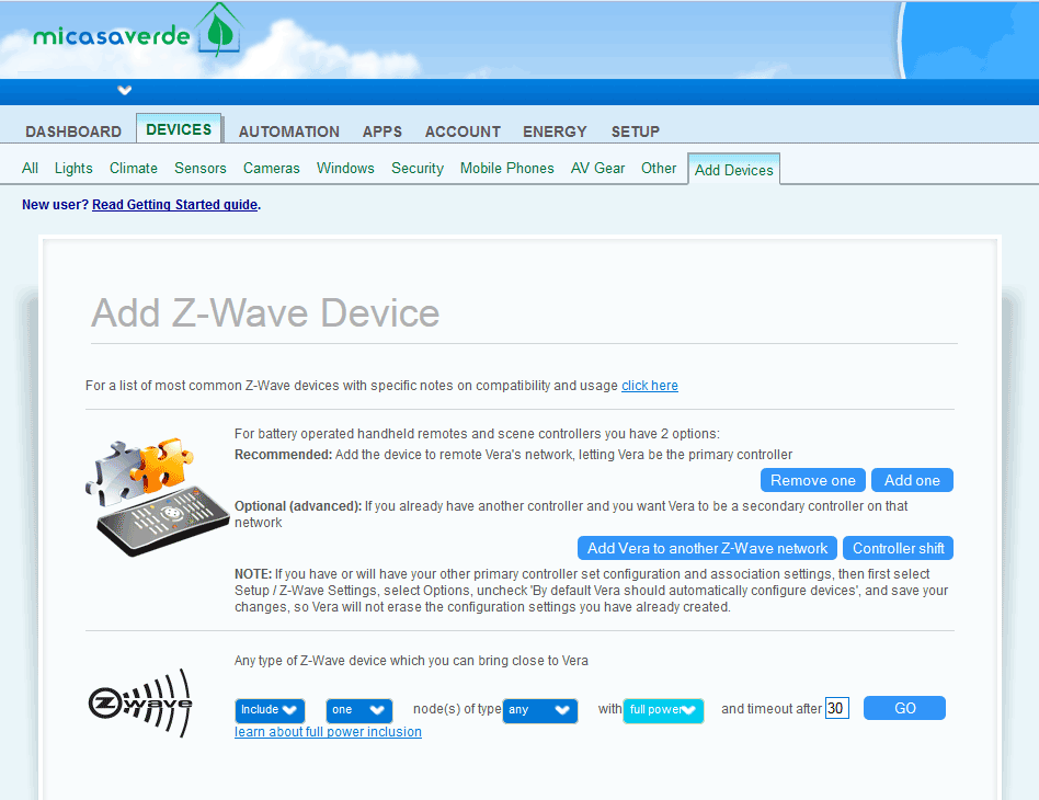Since my controller of choice is the Vera 3, I fired up the web UI and began the process to add the Fibaro wall plug. In Z-Wave terms this is known as “inclusion” and usually takes a few minutes of pushing buttons on a device in specific combinations after putting the controller into “include” mode.