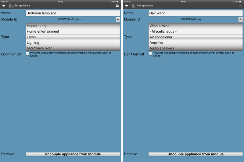 At this point I redeployed the modules around the house, and the wireless networking performed flawlessly, seamlessly adapting to the changes in topology. I also took the opportunity to customise each of the modules using the settings panel. Here you get to choose from a wide variety of appliances to match the load under test, although they could do with adding a few more – I’ve had to put the Mrs’ hair straighteners in as an ‘air conditioner’ (see what I did there?)