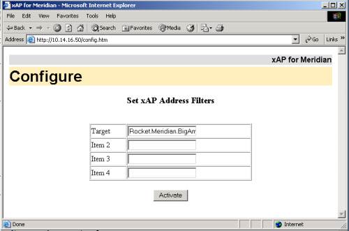 There is one item to configure on the Rocket – that’s the xAP address of the devices for targeted commands. The rocket runs its own baby web-server explicitly to let you do that, which worked fine.