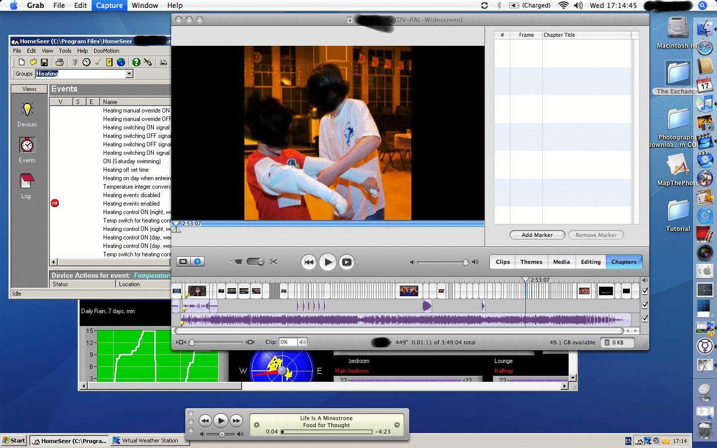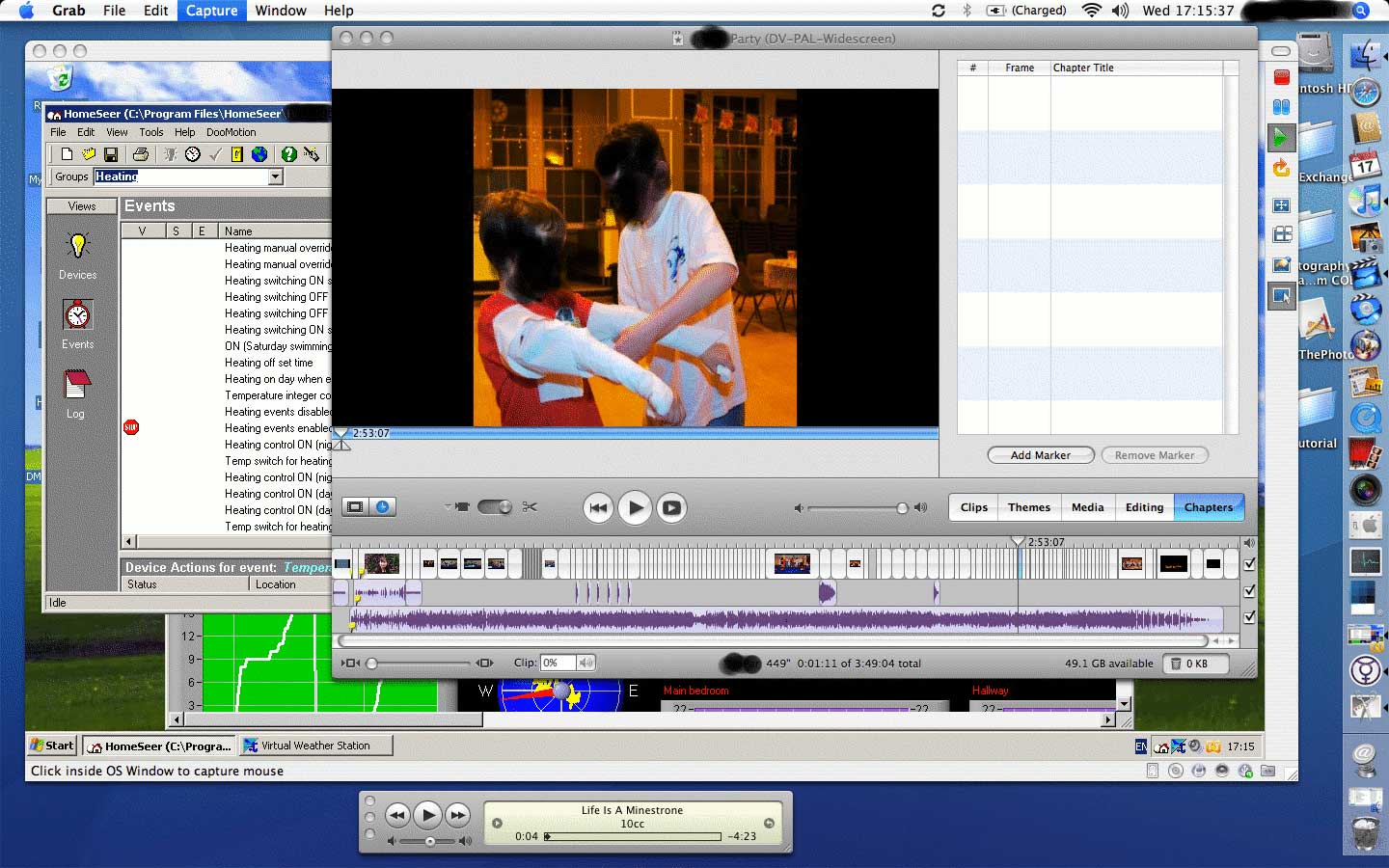 Performance comparisons & Testing Wile the mac only has 1GB of RAM it is managing to run Homeseer 10-20% faster within Parallels on-top of OS X. Initially I was freaked out at how this could be, I think perhaps its not just Parallels and Intel magic sauce at work. One important consideration I must remind readers is that the Windows install inside parallels is of course fresh XP, with SP2 and latest updates whereas the install on my PCi is 3-4 years old and so will be clogged with the usual detritus of 7×24 operation and patching with only a weekly auto-reboot to stay fresh.
