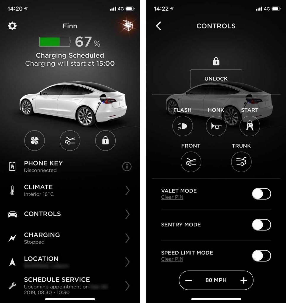 The Mobile app is excellent, allowing you to control certain aspects of the vehicle, like its temperature, locks, headlights and horn, plus the ability to monitor its location and state of charge. It’s particularly pleasant to use after coming from the abomination that was the Nissan leaf app. Push notifications are useful too and come through on the Apple Watch as well.