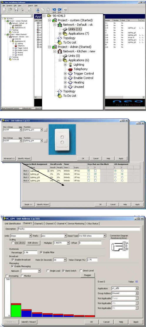 The Premise Gateway is a solid state machine, featuring a suite of embedded applications providing Internet connectivity and security with a web based user interface. The Premise Gateway is designed to interface to the building’s electrical and electronic systems. For example Security and Alarm System (MinderPRO) with Remote arming, disarming, zone monitoring, alarm state and mains voltage and battery level. It also includes Lighting Controls (C-Bus), controlling levels – On/off/ramp, and monitoring their states. It controls a single network with up to 255 group addresses and will also support Ulti lighting and USB Video Cameras. The Premise Gateway connects to the Internet and provides a connection to the Local Area Network. Devices such as PCs, Wireless Access Points and third party devices such as Video Web Servers may be connected through the Premise Gateway. Finally, the new C-Bus Installation Software V3.0 is on its way too. It will provide simple commissioning and easy debugging. It’s “Internet Ready” and based on C-Gate V2. Key Features are the cleaner, simplified user interfaces that allow 95% of programming to be achieved without ever having to enter into the “advanced” tabs. Another new feature – Barcode Support – provides a easy way to commission C-Bus Networks, allowing the simple entry of devices into the software and the recording of their serial numbers by scanning the label on the box. Many of the new items above are due to launch simultaneously in the UK and Australia, in July this year. It’s looking like a busy time ahead for Clipsal!