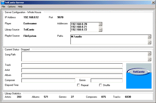 TELGEN www.telgen.co.uk www.telcanto.com Malcolm Green from Telgen demonstrated the new “TelCanto” software “TelCanto combines the convenience and portability of the Pocket PC with the power of Microsoft .NET to enable you to view your digital music collection from anywhere in your home, and play it on a variety of different hardware and software players. You can browse by artist, album, genre or composer, view album cover art, create lists of tracks to play using TelCanto’s unique PlayQueue facility, start, stop and pause playback and control the volume.” I am currently a beta tester for Telcanto so have a good idea of its features. The system is in two parts. A server application that runs on a PC and the client software for the PocketPC (PPC2002 or PPC2003). I currently use it to control my Barix Exstreamer on our bedroom system, and as part of the beta test I’ve used it to control WinAmp on a PC too. Currently there is support for Windows Media Player 9, Winamp V2 or V5, Slim Devices SlimServer V5 or above and the Barix Exstreamer or Exstreamer Wireless Unlike many other systems I’ve tried, Telcanto copes well with large MP3 collections. Some users on the beta program report good speed on collections of 50,000 tracks for example! Telgen hope to release TelCanto on general sale around the end of May 2004 at £35. There are plans for a PC client too which would be very useful. So, if you have a large collection of MP3s on your server and a PocketPC why not give it a try. |