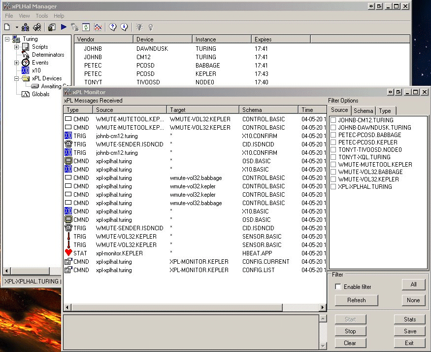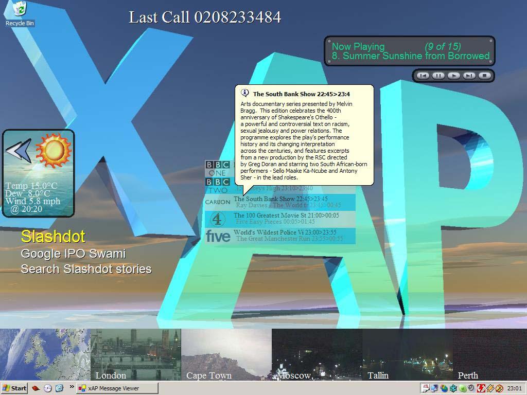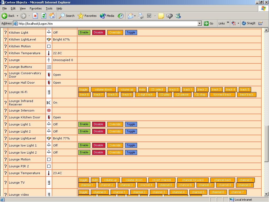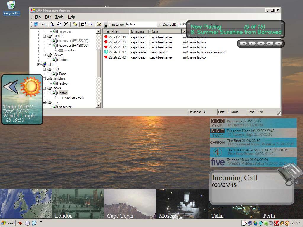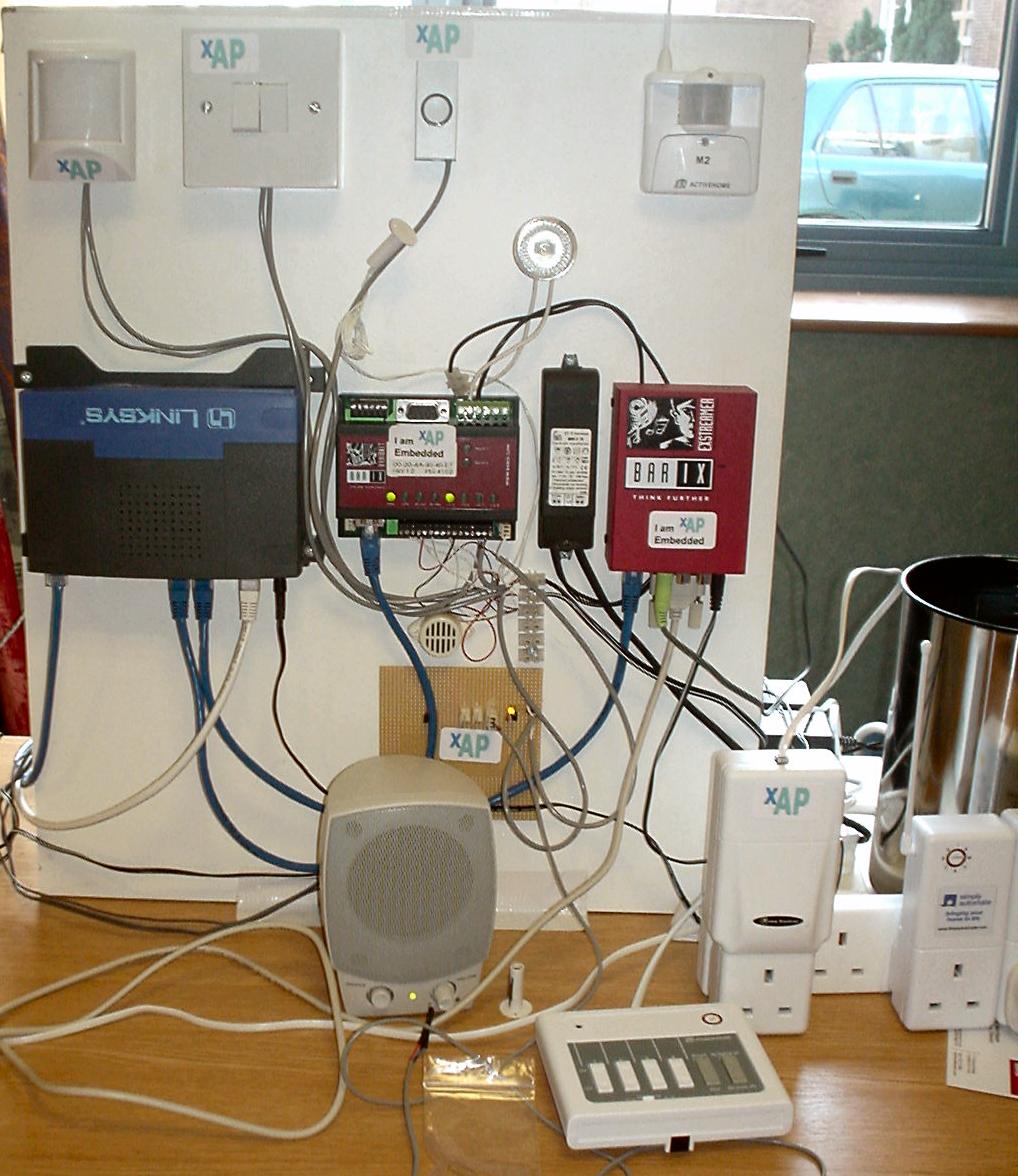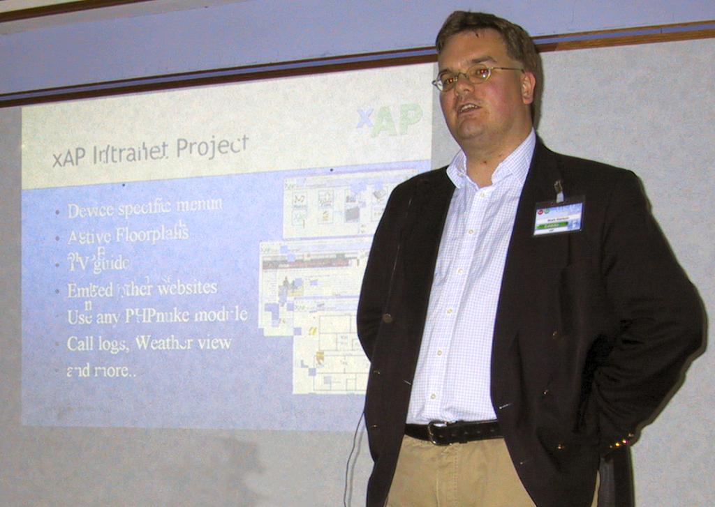 XAP www.xapautomation.org Mark Harrison, Patrick Lidstone, James Traynor and Edward Pearson represented the xAP team at the event. Mark’s presentation extolled the virtues of the xAP protocol as the “glue” between the various disparate home automation technologies we have in our homes. He said that the fact the xAP stand appeared to be a jumble of many technologies was actually the whole point! This reflects the situation in real life and xAP is what we’ve all been waiting for. To prove the point the xAP team were also able to demonstrate control of each others equipment. For example Mark Harrison changed a flag on his HomeVision which caused C-Bus controlled lights on Kevin Hawkins stand to come on. Similarly he was able to control devices connect to the Barix Barionet of Edward Pearson. Edward has been talking to Barix about development of the Barionet and xAP. His demo board showed the versatility of the Barionet unit and it was connected to various input and output devices including a PIR, doorbell, buzzer and lamp. James Traynor gave me a demo of his “xAP Desktop” I think it’s fair to say that xAP Desktop was probably the biggest draw to the xAP stand. It looks pretty and It allows information to popup on screen, for example caller ID. The pop-ups are semi-transparent (a feature only available on Windows 2000 and XP as far as I am aware) so possibly less intrusive. Other xAP applications like xAP Weather feed information to the xAP Desktop too, so you can have a host of information right where you need it. The software can even dynamically create your Windows wallpaper allowing it to show information too (look at the cid info on the top of the wallpaper in the Desktop 2 screenshot below for example. Although I liked the system I thought it would have been nice to see a common colour palette used across the many info popups and windows, which would give an even more professional look. Perhaps a skinable interface could be produced so as to allow the people with graphics talent to improve this part. However this is a minor gripe and overall xAP desktop was most impressive. A related project is the xAP Intranet which allows users to run a database on their home server accessed from a web front end. This allows information on the xAP Desktop (like CID again for example) to be stored for retrieval later on. You might like to see a list of your last 20 calls, or when the last time your were called by a certain individual was. The HomePod is an interesting device which the xAP guys are currently investigating. It’s wall mountable and has a decent 2.5″ blue-backlit LCD screen. It features an 802.11b wireless and Ethernet network interface, FM tuner, USB port, built-in stereo speakers, stereo audio outputs and headphone socket. Control is via a jog-shuttle rotating dial used to navigate its menu system. Purchasing the development kit has meant Patrick Lidstone has already created some of his own xAP menus on the device. With the in-built speakers, using the device for text to speech is a possibility that Patrick is working on also. xAP has come a long way since last year. After months of toil on the seemingly fruitless background work, exciting applications are appearing. At last people can start to see what it’s all about. Hopefully the team will now work on their website and documentation, as well as producing a single downloadable install file to encourage more users. |