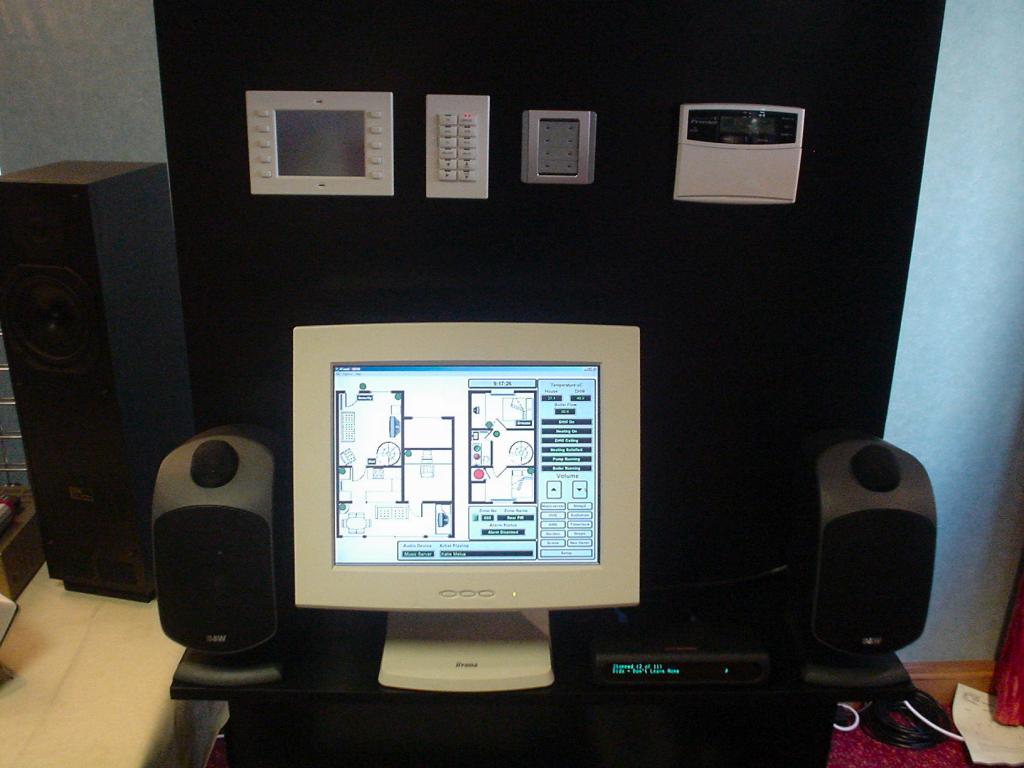 FIRM http://www.armaghelectrical.com.au/ Graham Howe demonstrated “Firm”, Frank McAlinden’s Zoned IR System as well as his new Probe system, interacting with HomeVision in the presentation room. The demo showed zoned infrared control of X10 lighting and multiple network MP3 players (Dell Digital Audio Receivers) using FirM. The Probe system also provided status feed back to HomeVision from DIN mounted X10 modules. Developed by Frank McAlinden following chats on the UK Home Automation mailing list (http://groups.yahoo.com/group/ukha_d/) the FirM system provides zoned IR transmit and receive (up to 8 zones), and the Probe system provides zoned LED/Video detection of kit (up to 8 zones each with 6 probes). Basically the FirM System is an 8 zone IR transmitter and receiver unit controlled by 4 Port A HomeVision outputs and 3 Port B HomeVision inputs connected via cat5 or a standalone IR repeater. The Probe system requires 5 of Port A HomeVision outputs and 1 of Port B Homevision inputs . If both FirM and Probes systems used then the Probe only requires an additional 2 Port A Homevision outputs. The Probe system can also be controlled via the built in serial pc interface. The demo also showed how the zoned IR system FirM could control the X10 DIN Rail dimmer modules LD11s and how the Probe system could reliably track the LD11s whether using HomeVision or manual control. |