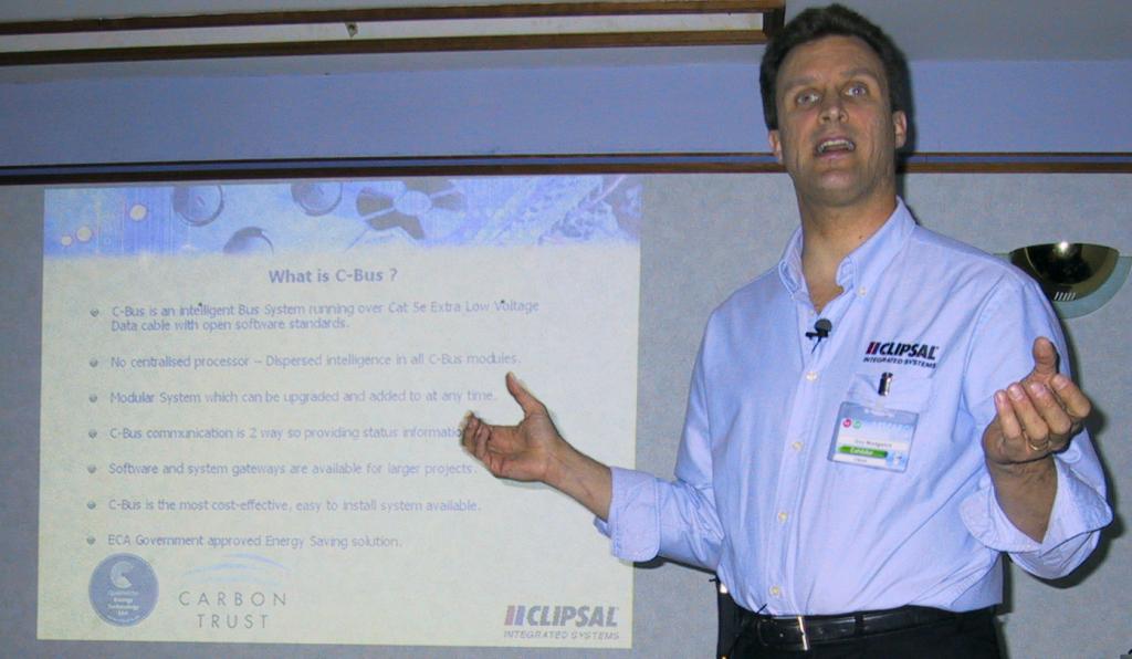 Dean Barrett of Rolec had his famous C-Bus display board, on his stand. This is the one viewed and controlled by thousands of people over the Internet. Rolec are seasoned C-Bus Integrators, already having many installations under their belt and they showed the latest Clipsal Software – HomeGate V2. Various touch screens were demonstrated controlling the system. The “Epods” Windows CE tablet was shown wirelessly controlling lighting. Even more impressive was the “Kiosk PC“. Its speed and the responsiveness of its touch screen are particularly suited to the job, and setting lighting levels was a simple task of touching the virtual “sliders” and dragging them to the level you required. The new Clipsal C-Bus Saturn Glass Switch was also on the stand. These are brand new and have just arrived on the UK, so this was one of the first times this new product was on show to the public. Rolec are available for professional C-Bus installation projects in domestic and commercial setting. |