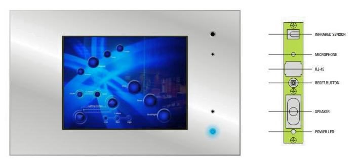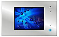 Probably one of the most exciting aspects of the show was the chance to see the new C-Bus Wireless. This is a an advance over the existing “Ulti” range and is a “2-Way” RF solution. The C-Bus Wireless switch has been a massive design challenge for the boffins at Clipsal. The unit is a straight swap for your existing light switch, fitting in the same wall box and needing no additional wiring at all! This meant that Clipsal had to power the switch using the live feed only, as no neutral or earth is available inside a standard UK light switch back box. They also had to fit in the RF circuitry as well as the dimmer itself! Clipsal have many years’ experience in the dimmer business and use their “phase-cut” technology to produce an efficient and cool running device. The RF link is encrypted so there will be no issues with multiple installations where houses are in close proximity. Range was quoted as 20 to 40 metres and of course as it’s RF and not IR it will work without needing line of sight. Many new products will be available in the wireless range including a wireless socket which is also retro fit. A Gateway product will also be available so that if, for example, you want to retro fit C-Bus Wireless to your existing property, then perhaps add a hard wired C-Bus network to a new extension, you can marry the 2 networks together. The C-Touch Colour is the new 7 inch C-Bus touch screen. 11mm thick and available in Neo, Saturn Glass, Stainless Steel, and Brass options it has an immense array of connectivity and functionality including Ethernet, RS232, TV Out, Microphone, Light Sensor, IR and USB!