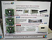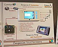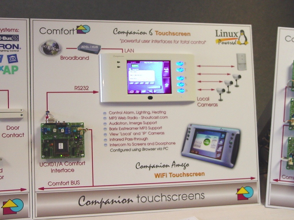 Also on display was the new LCD Colour Touch Companion Screen, which definitely drew the most attention at the stand. A very nice unit with superb graphic capabilities (I believe it uses Flash to design its screens). One very nice feature is its ability to display a local analogue video CCTV feed (up to 5) on the unit as well as controlling your Comfort system, lighting, heating and even control your audio collection as MP3 using the Barix Exstreamer or Audiotron.
