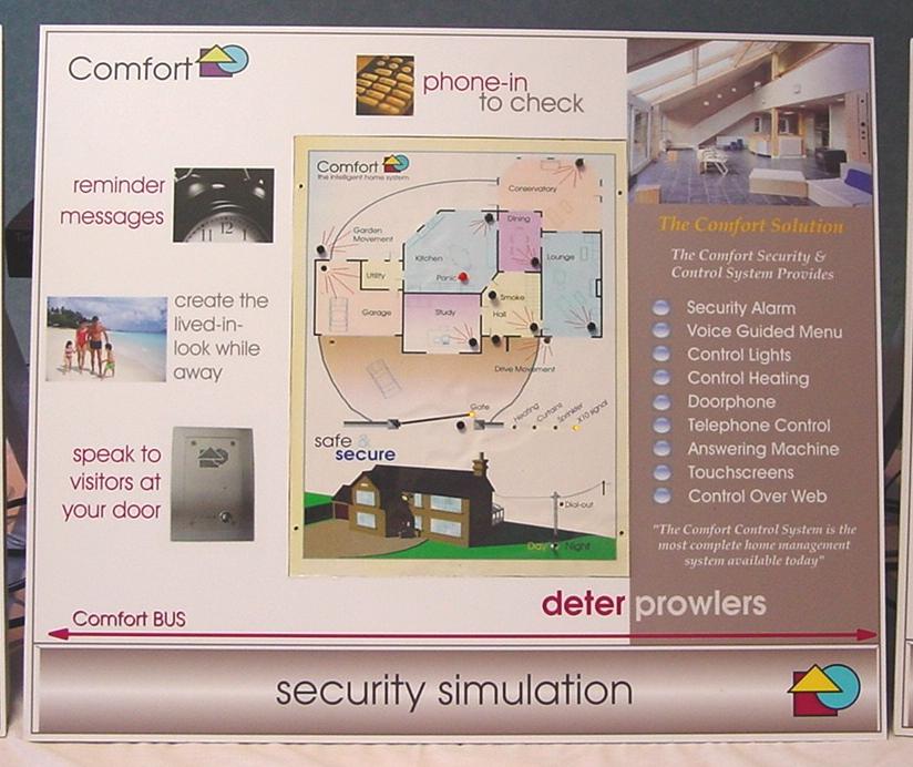 COMFORT www.home-control.co.uk Although Comfort is one of the most well known automated security products in the UK, this was the first year they attended the UKHA event.. Directors (husband and wife) Andy and Caroline Roberts produced a great display showing the Comfort security and home automation panel, and the array of systems it can now attach to.