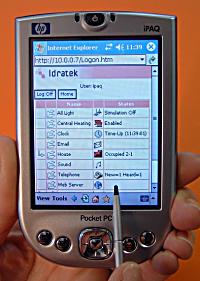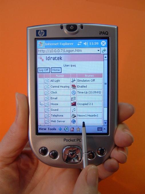 IDRATEK www.idratek.com Idratek had a sort of a “soft launch” of their products at UKHA2003. This year they were back with new modules, new colours and new features in their Cortex software. Idratek are not a lighting system. In fact they don’t even have a dimmer to show yet. However, their forte lies in creating a truly intelligent network of sensors on their “masterless networking infra-structure”. Some interesting new developments to Cortex were also presented like the email and web server features. The team also demonstrated their recent inclusion of xPL support which allows Idratek module level functions as well as higher level Cortex logic to be accessible via the xPL protocol. The comprehensive set of Idratek application modules allows a wide range of automation functions to be configured. An integrated audio network provides for vocal control, feedback and communication. Idratek’s Windows based ‘Cortex’ software provides a user friendly approach to the home automation tasks. Cortex also provides comprehensive access to higher level interface functions such as speech synthesis and recognition, telephony, imaging, e-mail and Web services. Idratek listened to the comments from last year’s delegates and have produced several new versions of their faceplates including white, chrome plated and matt black coated. However, I still can’t help feeling that their modules are slightly strange looking, but I guess that’s down to personal taste. Certainly the team are currently concentrating on function over form. It’s also true that Idratek are trying to create affordable modules in the £35-£50 retail price range so in fairness they don’t have the same scope for design flair in their hardware. Vivian Watts gave me a quick demonstration of the new web interface, including a very nice looking PocketPC version. Apparently on arrival at the show he was able to whip put his PDA, type a sentence into it, and send it to his home, where the Idratek software did a text-to-speech conversion and “spoke” to his wife in the kitchen!