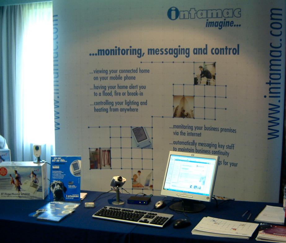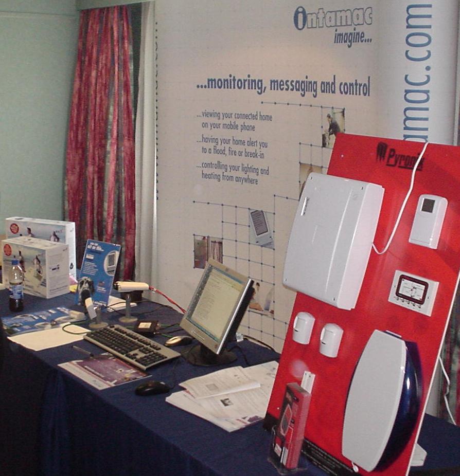 INTAMAC www.intamac.com Scott Crowther was attending the UKHA event on behalf of Intamac for the third year running. Intamac have been with us since we were meeting in a room above a pub in London, Scott has watched the UKHA event grow, as we have watch Intamac grow too. Fresh from exhibiting at IFSEC 2004, the UK’s largest security show, this year they were displaying the award-winning Home Manager, a web based alarm monitoring and messaging service. On the stand were the Axis 2100 and 205 IP Network Cameras. Intamac will soon be offering a camera monitoring system, enabling SMS text alert messages, or even photos via MMS to be sent to your mobile phone as well as emails and voice calls to be sent to friends or Group 4 guards when the cameras detect motion in your home! Also on show was the BT Home Monitor, an inexpensive 24 hour monitored alarm system for your home. Fitted in under 1 hour, this wireless alarm system is monitored by Intamac. In addition to security applications, Intamac are also now working in the field of Environmental Monitoring, monitoring server rooms and other technical equipment for power failure, temperature change, air flow, humidity, flood and more. Even though this system has just been introduced it has already saved a potential disaster where a system administrator was alerted in the middle of the night after the air-conditioning failed in his server room. The Intamac alert enabled him to have the system fixed quickly, thus saving the inevitable hardware failures. As they expand I can see Intamac moving from simply alarm monitoring company to provider of sophisticated home automation solutions via the Internet. |