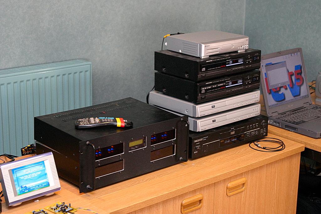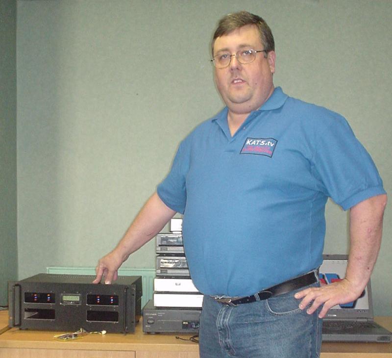 KAT5 www.kat5.tv Keith Doxey had big news at the show this year. The status of the KAT5 Switcher has now officially moved from “vapourware” to “heavy-mist ware”. The KAT5 Switcher mock-up we saw last year now has “stuff” inside it, and it works! A modular design, it will have a maximum of 16 inputs and 16 outputs and will have the ability to connect any input to any number of outputs.