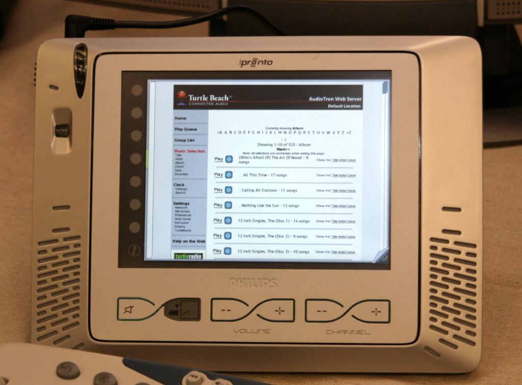 A good draw to the stand was the iPronto. Currently the most expensive of the Philips Pronto range of remote controls at around £1,200, the device operates as a wireless tablet computer as well as an IR and RF remote control. The ability to view a web page wirelessly means the iPronto is perfect for controlling most of the new range of network MP3 players that now include web interfaces. Phil Harris showed the Laser range of network MP3 players in conjunction with the iPronto.. The collection on show included the Barix Extreamer, Barix Wireless Exstreamers, the AudioTron and the Turtle Beach AudioTron and the SliMP3 Squeezebox |