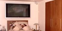 The bedroom scene was the third one, featuring a plasma above the headboard (strange place). Once again scene lighting was employed and controlled from various points around the room.