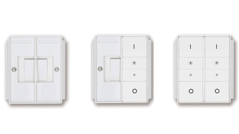 - Covers existing flat top light switch to allow fitting of two Philips Hue Dimmer Switches