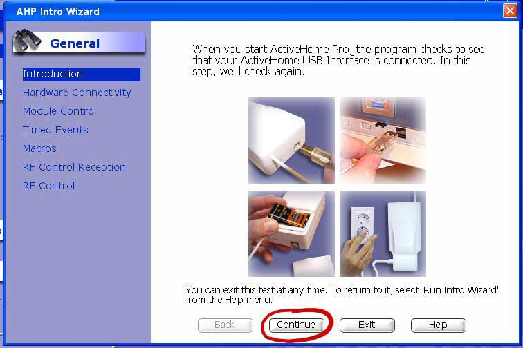 Once the initial splash screen has finished you get the help wizard pop up. For first time users this may be useful as it runs through how to set up modules and check the USB connection to the CM15 is connected. Mind you when you start the software you get a warning letting you know if the USB cable is unplugged.