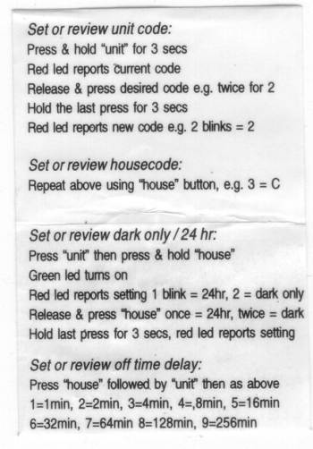 In summary, the MS13E is an excellent little device which does its job well, with some minor irritations. Chief amongst these is the inability to disable the light sensor, no option for not sending an OFF code after the timeout period, and no provision for corner mounting. House and unit code assignment and feature selection is achieved using the minimum number of buttons possible. Whilst fiddly this now seems to be the de facto standard.